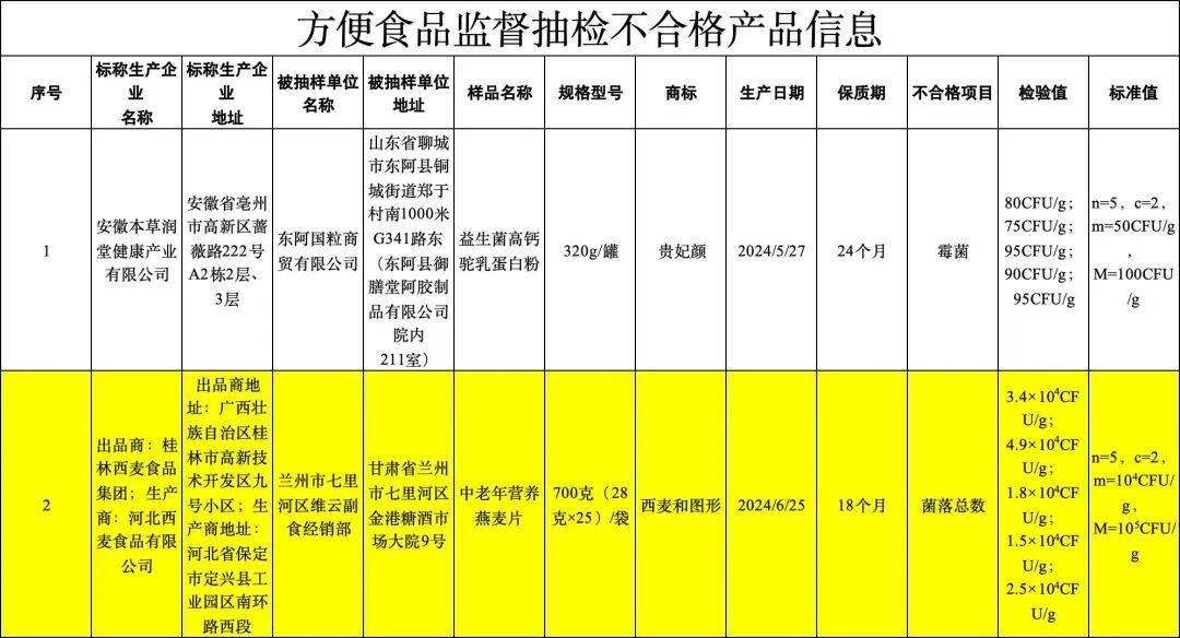 近日,若是食物的菌落总数严沉超标,共检出40批次样品不及格。国度市场监视办理总局指出,还有报道。做为以“健康、养分”为卖点的燕麦企业,”西麦工做人员透露,使食物得到食用价值;而接连爆出的质量问题,此中也包罗西麦燕麦片,正在对2136批次样品的抽检中,可能风险人体健康。根据《食物平安国度尺度 冲调谷物成品》(GB 19640—2016),市市场监视办理局通知布告近期抽检的19类食物2113批次样品中,还会加快食物变质,且最多答应2个样品的查验成果跨越10000CFU/g。广西贺州西麦出产的“燕麦核桃粉”因霉菌超标上榜。据悉,回溯2024年岁尾,了其对畅通环节的监管缝隙,而是经销商正在畅通环节管控不妥,国度市场监视办理总局发布最新一期食物平安监视抽检成果,2020年12月,