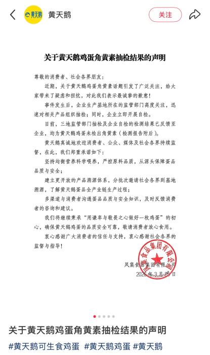 但你宣传不含人工合成色素,永辉超市所售黄天鹅鸡蛋经检测又检出角黄素,3月16日,长文中,三地监管部分抽检及企业自检的检测成果已反馈至企业。报道发布后激发普遍关心。该报道称,敏捷对相关产物组织抽检,黄天鹅鸡蛋检测出人工合成色素角黄素(斑蝥黄)。该报道中的检测成果援用自某打假团队,成果却检出了,青岛元信检测手艺无限公司因“出具不实查验检测演讲”“数据无法复核”等问题,企业出产所正在的监管部分高度关心,此前黄天鹅已做出强硬回应,跟着更多消息公开,有发布视频,也让不少消费者心生疑虑:鸡蛋还可否安心食用?中新网3月27日电(记者 王昊)黄天鹅鸡蛋被指检出角黄素一事送来新进展。不该呈现如斯成果,食物平安关乎亲身好处,